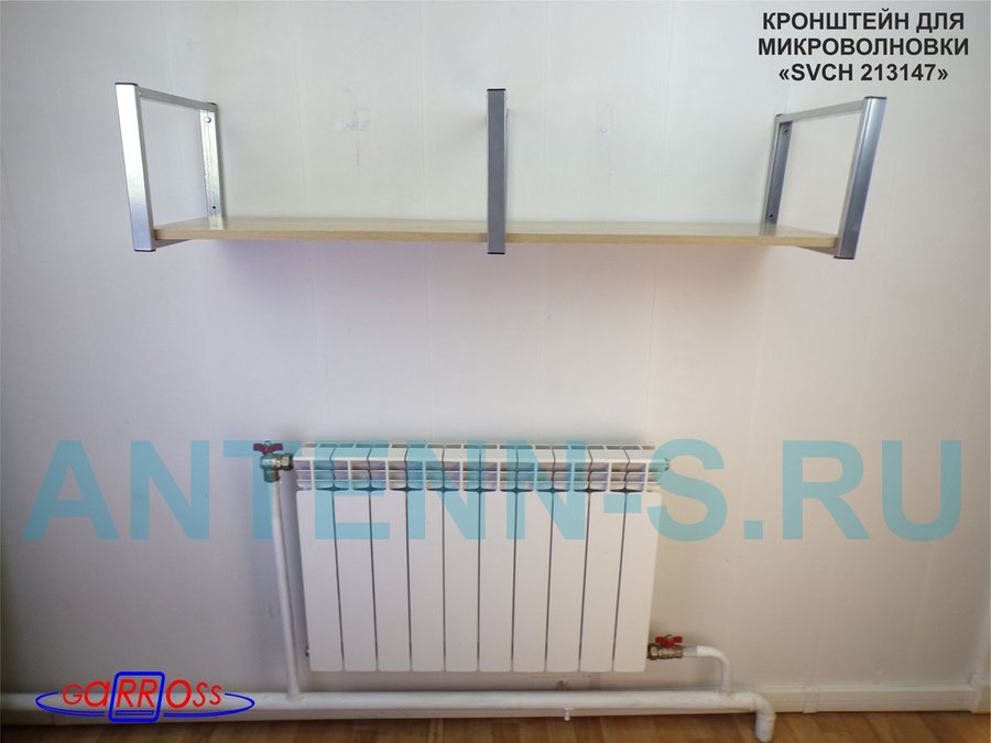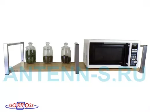 - Полка надежно крепится к стене при помощи анкеров или шурупов с дюбелями, на ней можно разместить микроволнрвую печь, кухонную технику, посуду, специи