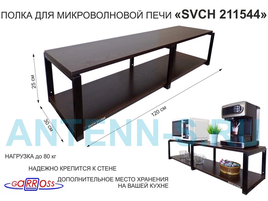 Полки для микроволновок "SVCH" кронштейны для СВЧ печей, высота 27см, 120х30см, 2 уровня