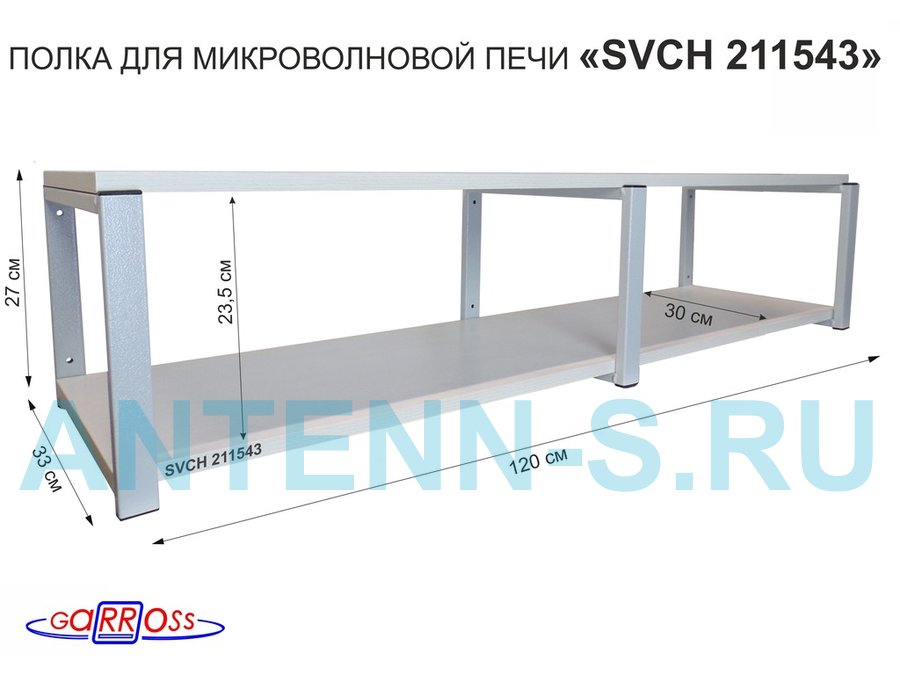 Кронштейн для микроволновки, 27см серый, 2 полки 30х120см "SVCH 211543" под микроволновую печь,сосна