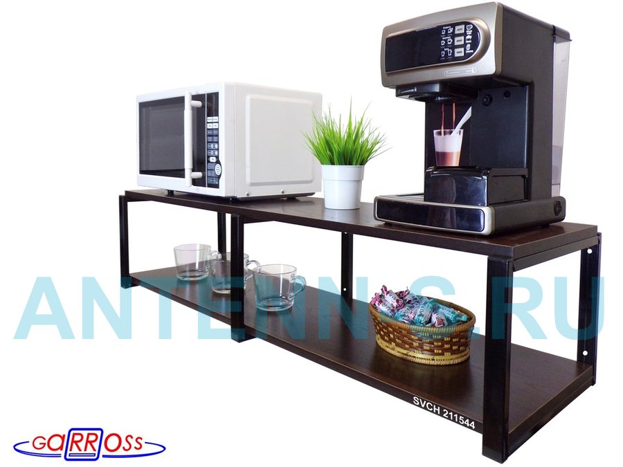 Кронштейн для микроволновки, 27см черный, 2 полки 30х120см "SVCH 211544" под микроволнов. печь,венге