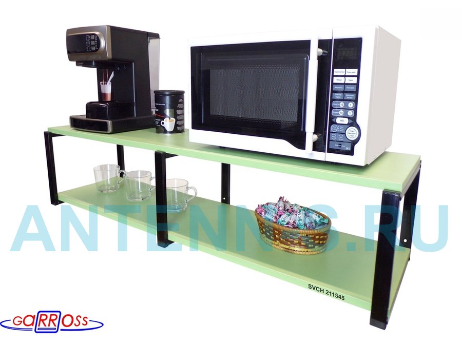 Кронштейн для микроволновки, 27см черный, 2 полки 30х120см "SVCH 211545" под микров. печь,салатовый