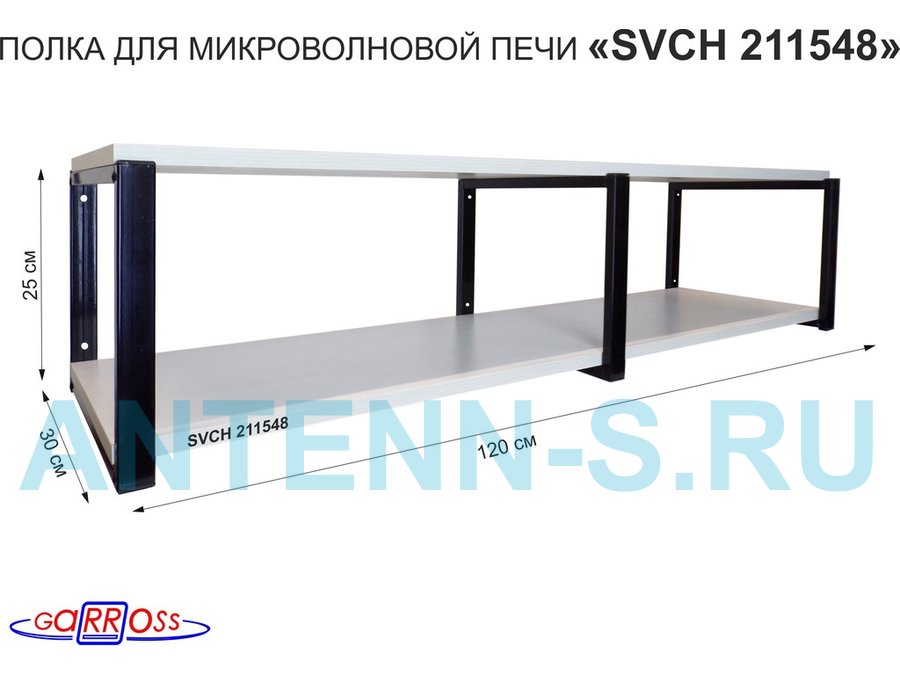 Кронштейн для микроволновки, 27см черный, 2 полки 30х120см "SVCH 211548" под микроволнов.печь,сосна