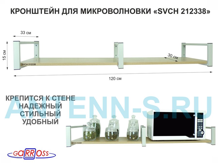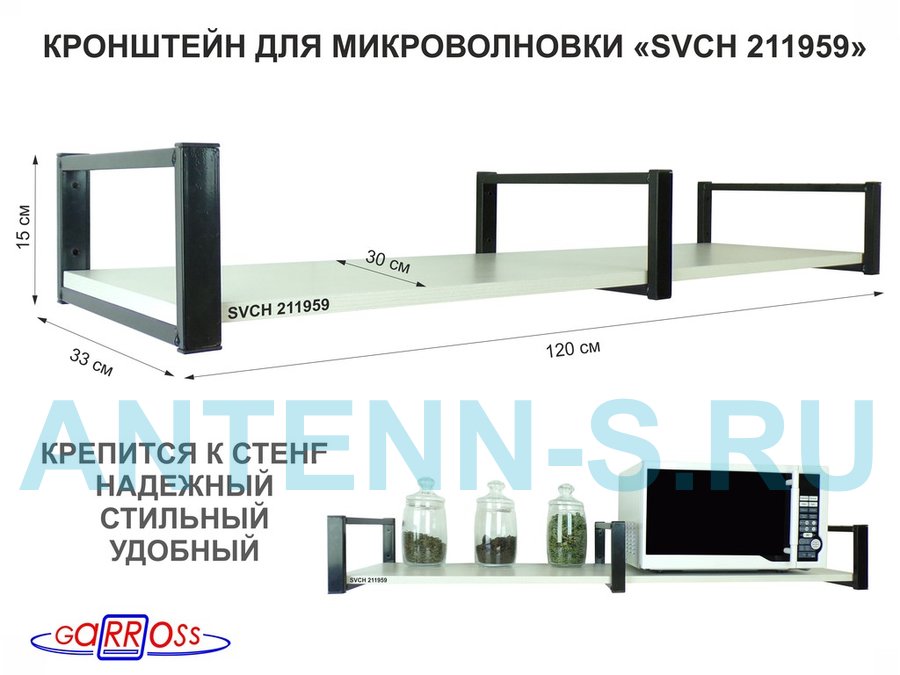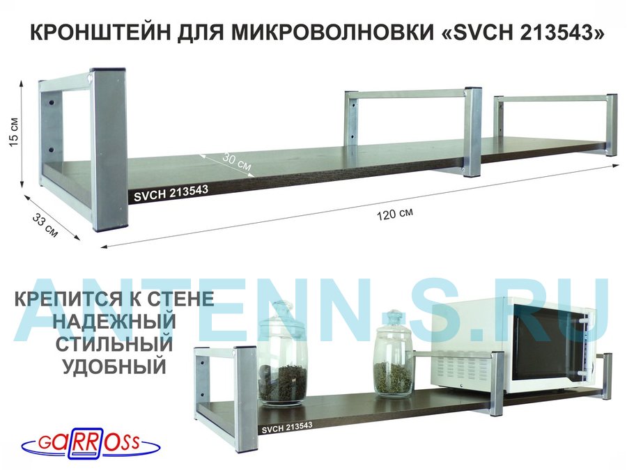 Кронштейн для микроволновки, 15см серый, 1 полка 30х120см "SVCH 211958" под микроволновую печь,сосна