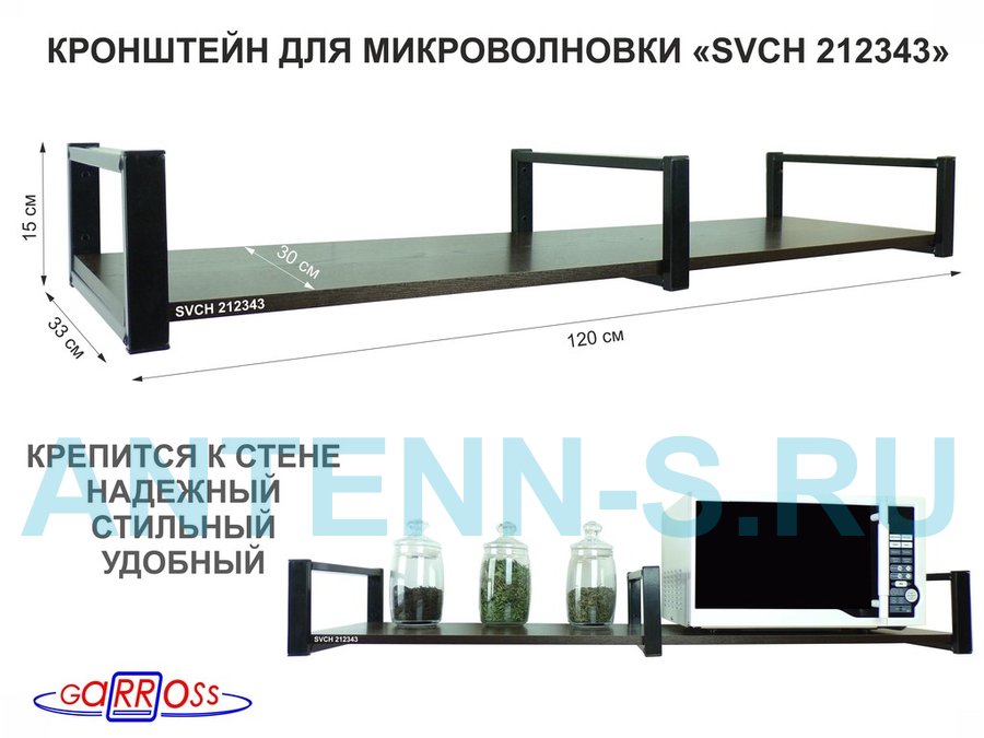 Кронштейн для микроволновки, 15см серый, 1 полка 30х120см "SVCH 212339" под микроволновую печь,венге