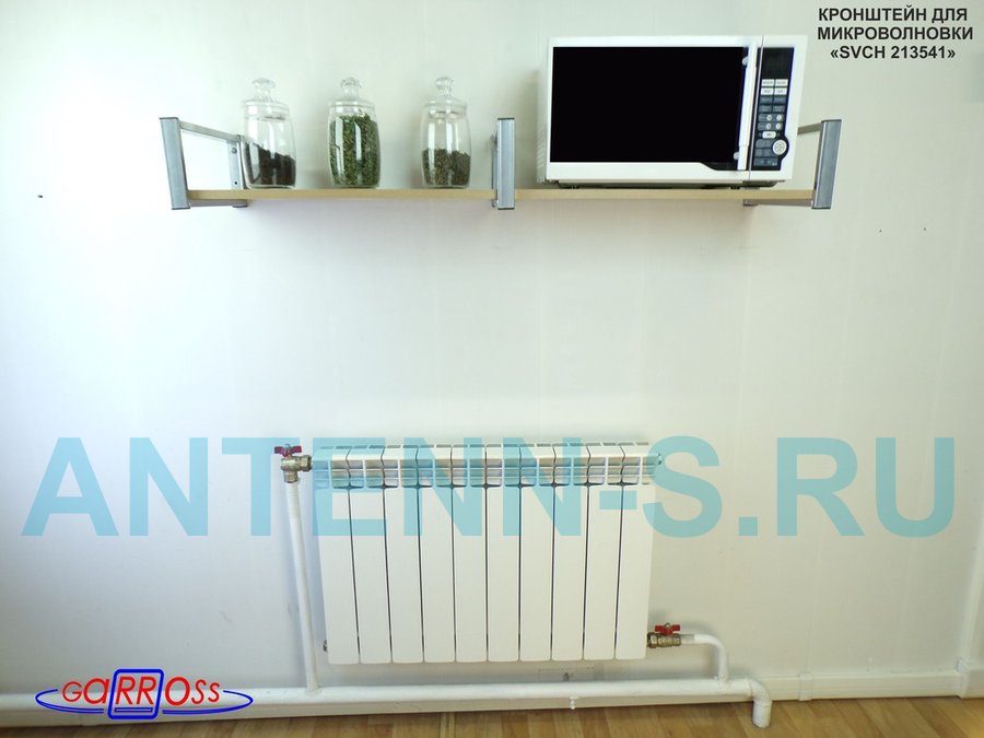 Кронштейн для микроволновки, 15см сереб, 1 полка 30х120см "SVCH 213541" под микроволновую,дуб