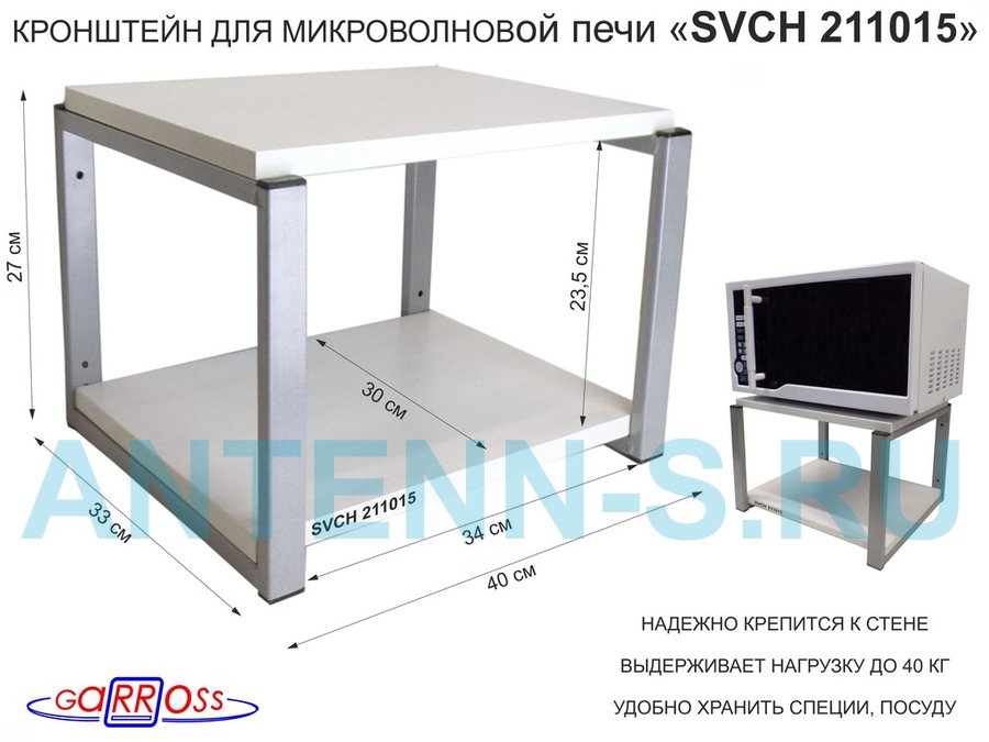 Полки для микроволновок "SVCH" кронштейны для СВЧ печей, высота 27см, 40х30см, 2 уровня