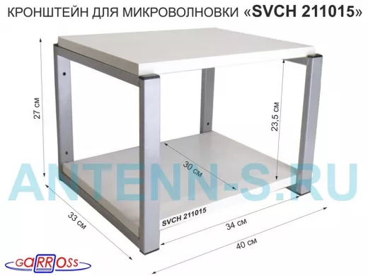 Кронштейн для микроволновки, 27см серый "SVCH 211015" под микроволновую печь, полка 30х40, сосна