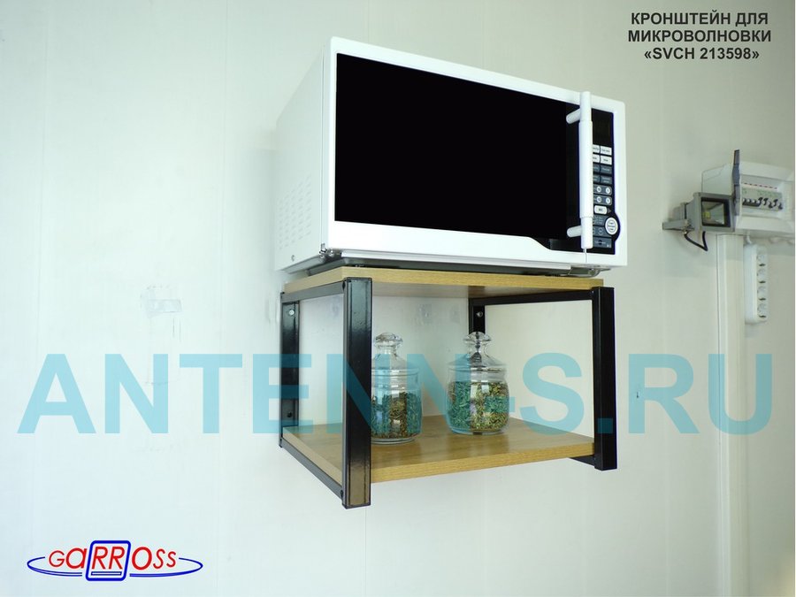 Кронштейн для микроволновки, 27см черный"SVCH 213598" под микроволновую печь, полка 30х40, дуб вотан
