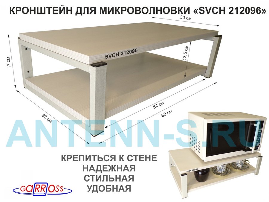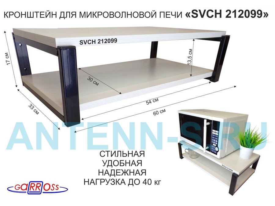 Полки для микроволновок "SVCH" кронштейны для СВЧ печей, высота 17см, 60х30см, 2 уровня