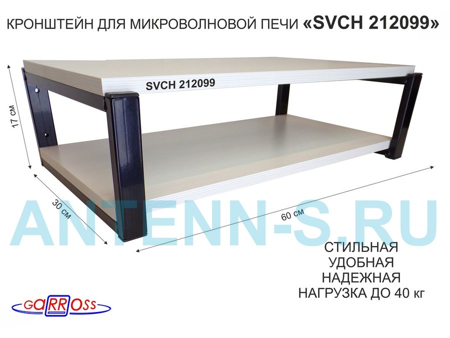 Кронштейн для микроволновки, 17см черный "SVCH 212099" под микроволновую печь,полки 60х30, сосна
