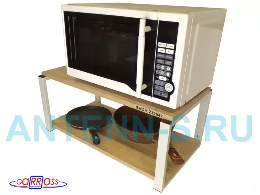 Полка надежно крепится к стене при помощи анкеров или шурупов с дюбелями, на ней можно разместить микроволновую печь, кухонную технику, посуду, специи