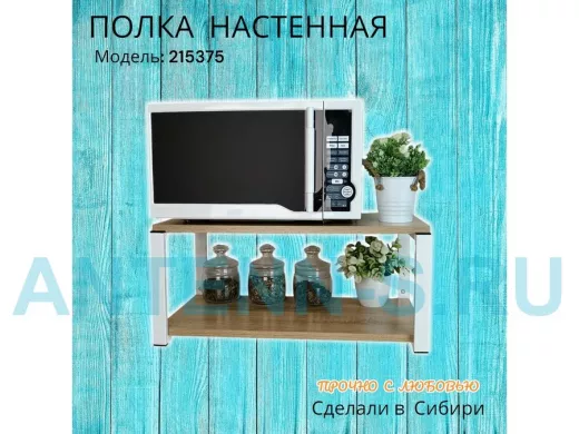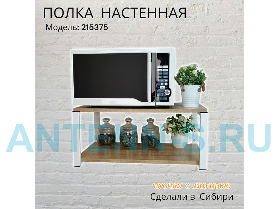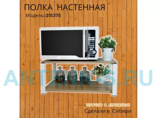 Полка надежно крепится к стене при помощи анкеров или шурупов с дюбелями, на ней можно разместить микроволновую печь, кухонную технику, посуду, специи
