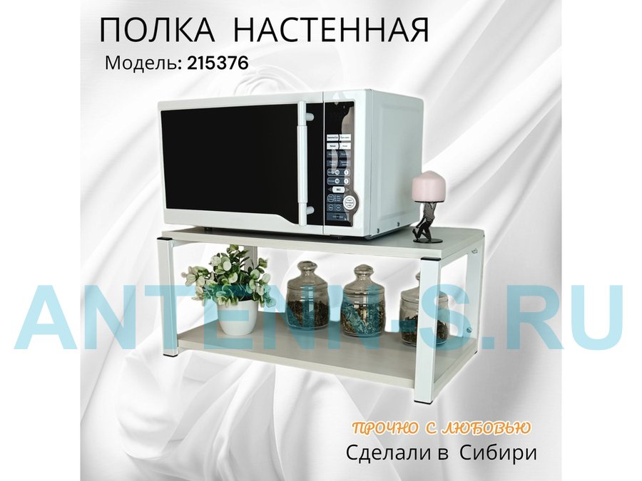 Полка для микроволновки "SVCH 215376" высота 27см, размер полки 60х30см, белая, сосна выбеленная