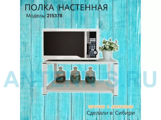 Полка надежно крепится к стене при помощи анкеров или шурупов с дюбелями, на ней можно разместить микроволновую печь, кухонную технику, посуду, специи