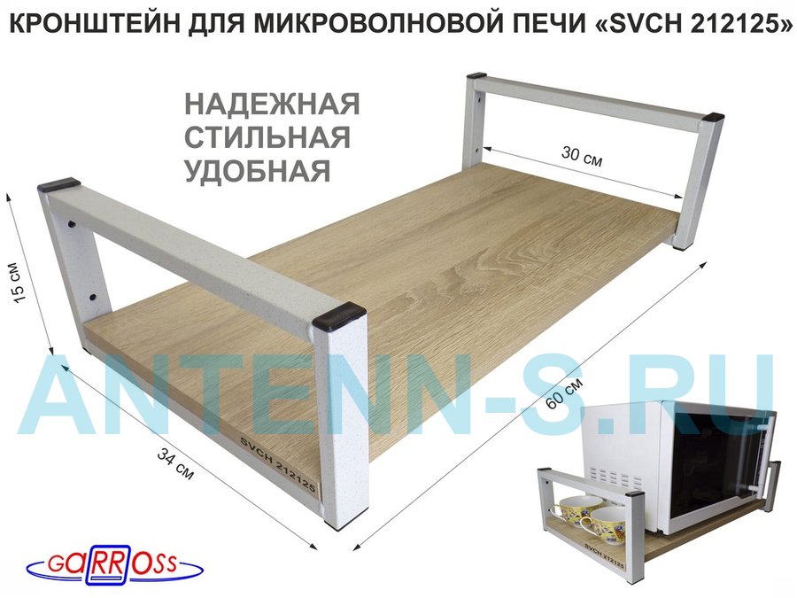Кронштейн для микроволновой печи, серый "SVCH 212126" высота 15 см, полка 60х30 см, сосна выбеленная