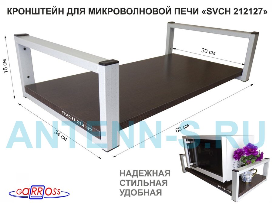 Полки для микроволновок "SVCH" кронштейны для СВЧ печей, высота 15см, 60х30см, 1 уровень