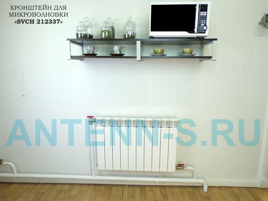 Кронштейн для микроволновки, 17см серый, 2 полки 30х120см "SVCH 212337" под микроволновую печь,венге