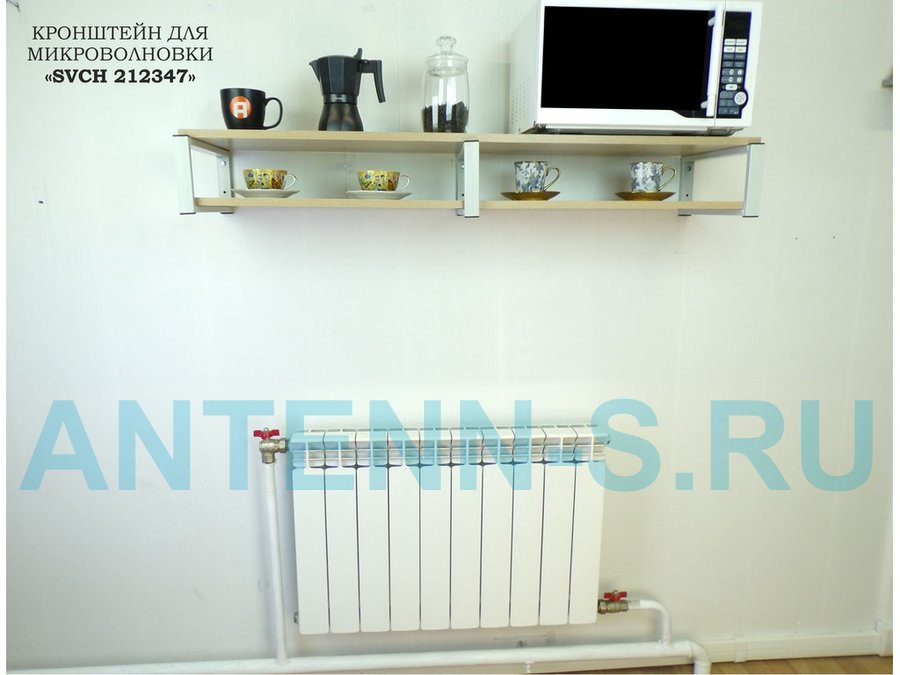 Кронштейн для микроволновки, 17см серый, 2 полки 30х120см "SVCH 212347" под микроволновую печь, дуб