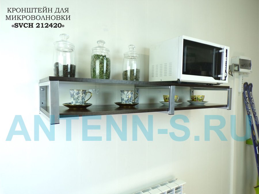 Кронштейн для микроволновки, 17см серебристый, 2 полки 30х120см "SVCH 212420" венге