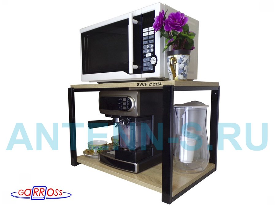 Кронштейн для микроволновки, 38см черный "SVCH 212324" две полки 35х54см, дуб сонома