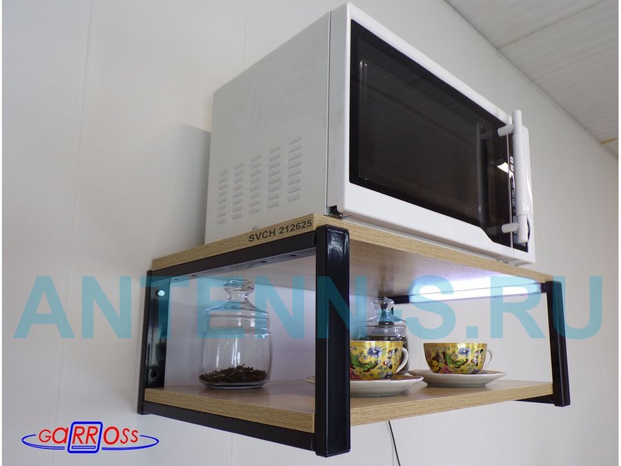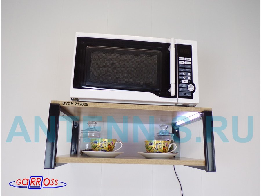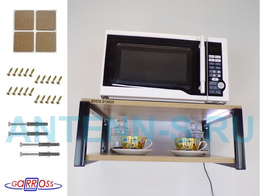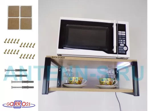 Кронштейн для микроволновки с подсветкой, 21см черный "SVCH 212625" две полки 35х54см, дуб сонома