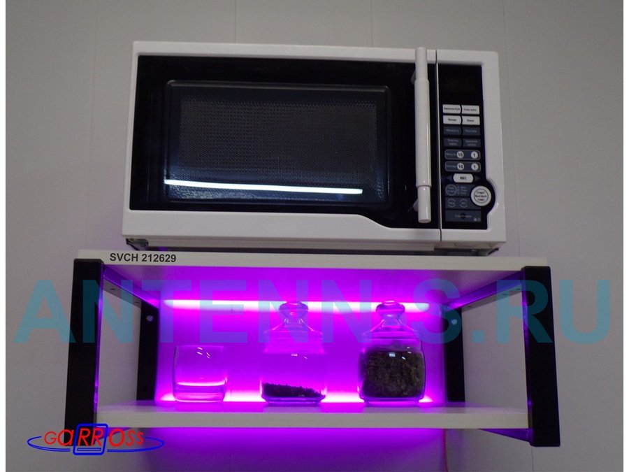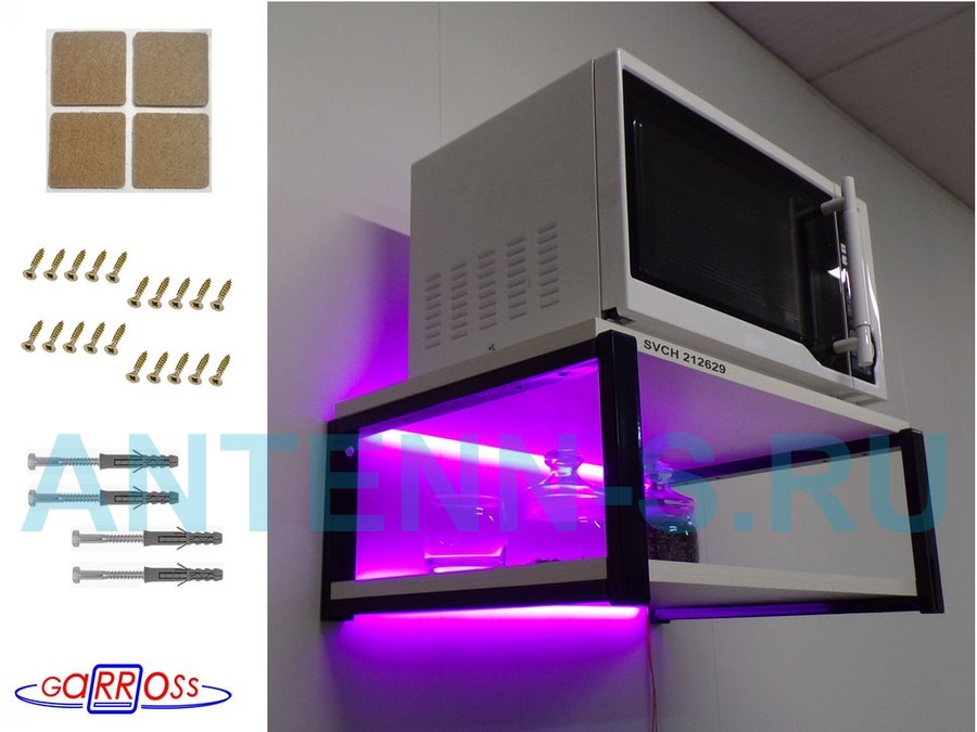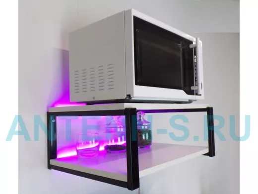 Кронштейн для микроволновки с розовой подсветкой, 21см черный "SVCH 212629" две полки 35х54см, сосна