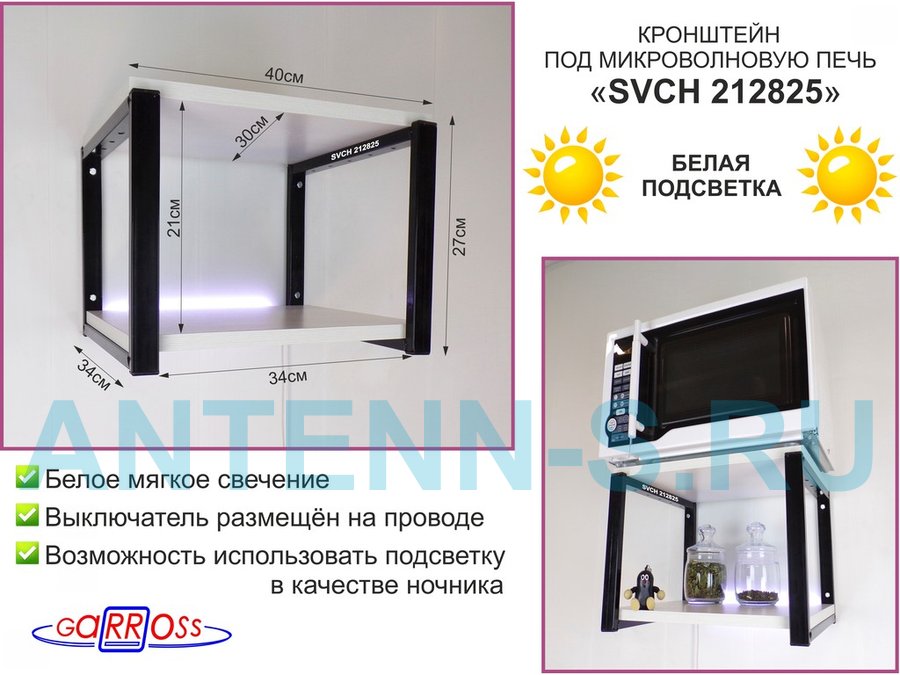 В корзину Купить в 1 клик Полка с подсветкой белого цвета для микроволновки, 27см чёрный "SVCH 212825" полки 30х40 см, сосна
