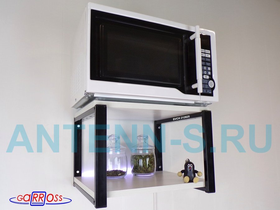Полка с подсветкой белого цвета для микроволновки, 27см чёрный "SVCH 212825" полки 30х40 см, сосна