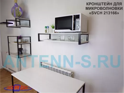 Кронштейн для микроволновки, 17см чёрный "SVCH 213166" под микроволновку,две полки 90х30, сосна