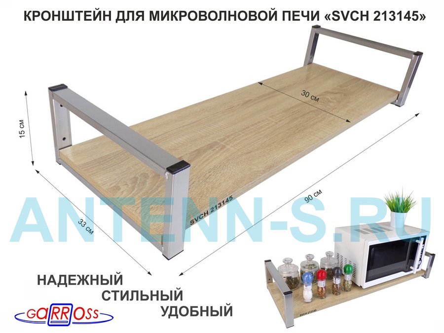 В корзину Купить в 1 клик Кронштейн для микроволновой печи, 15см серебристый "SVCH 213145" полка 90х30, дуб сонома