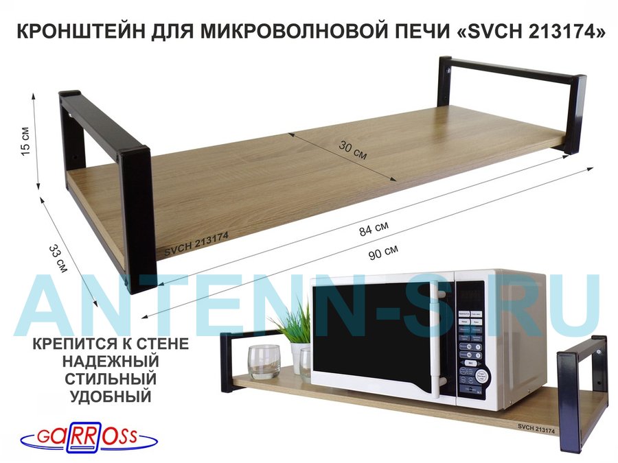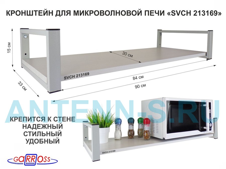 Полки для микроволновок "SVCH" кронштейны для СВЧ печей, высота 15см, 90х30см, 1 уровень