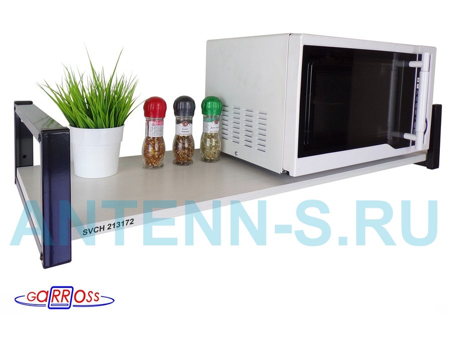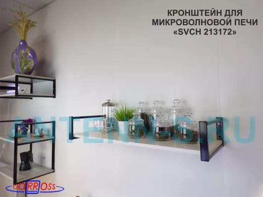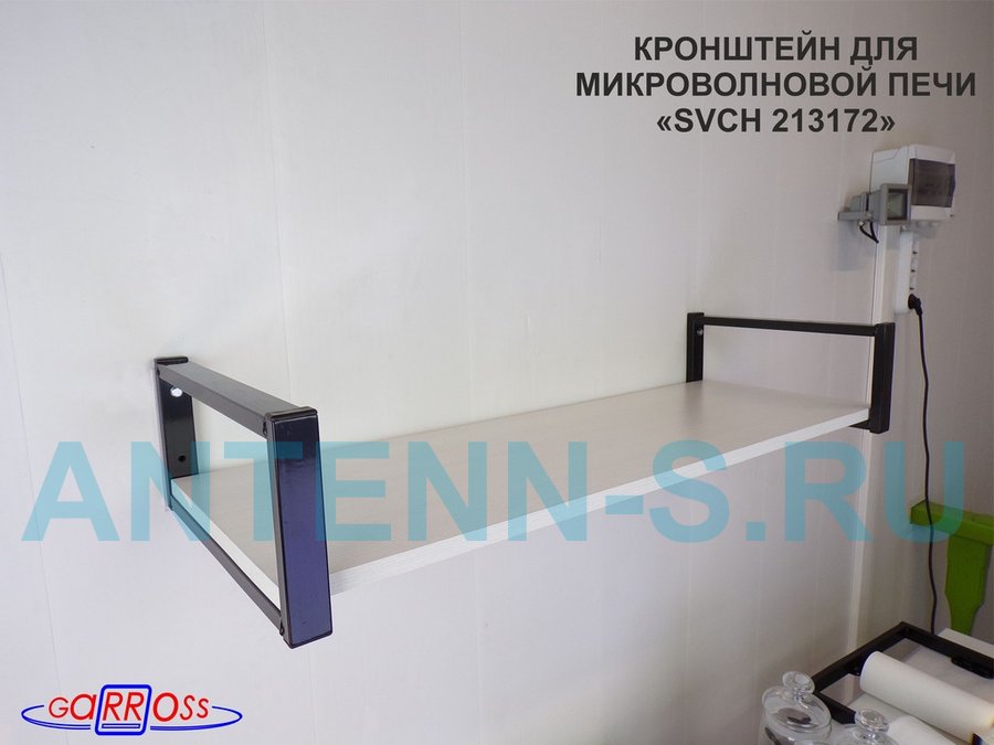 Кронштейн для микроволновой печи, 15см чёрный "SVCH 213172" полка 90х30, сосна выбеленная