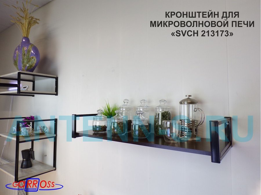 Кронштейн для микроволновой печи, 15см чёрный "SVCH 213173" полка 90х30, венге