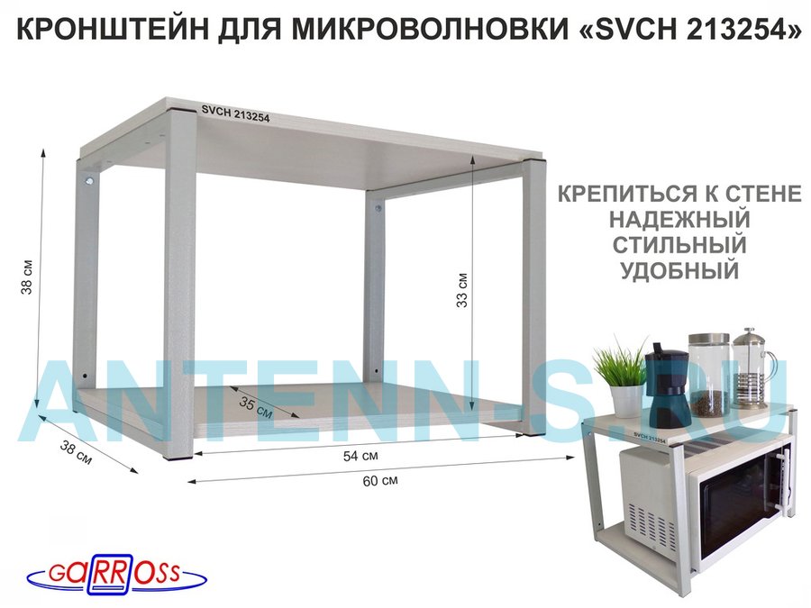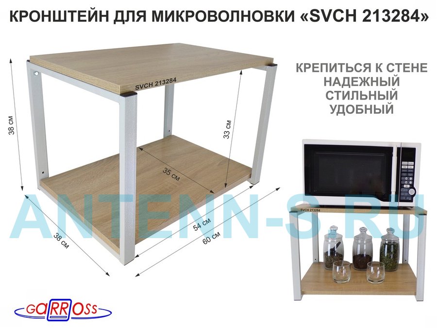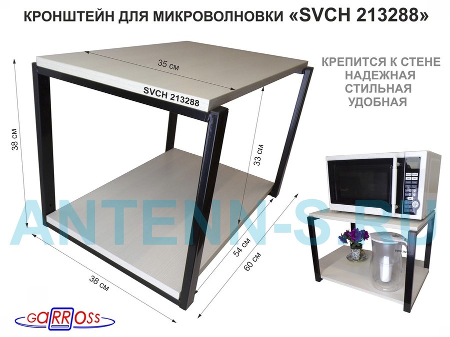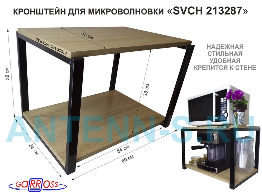 Полки для микроволновок "SVCH" кронштейны для СВЧ печей, высота 38см, 60х35см, 2 уровня