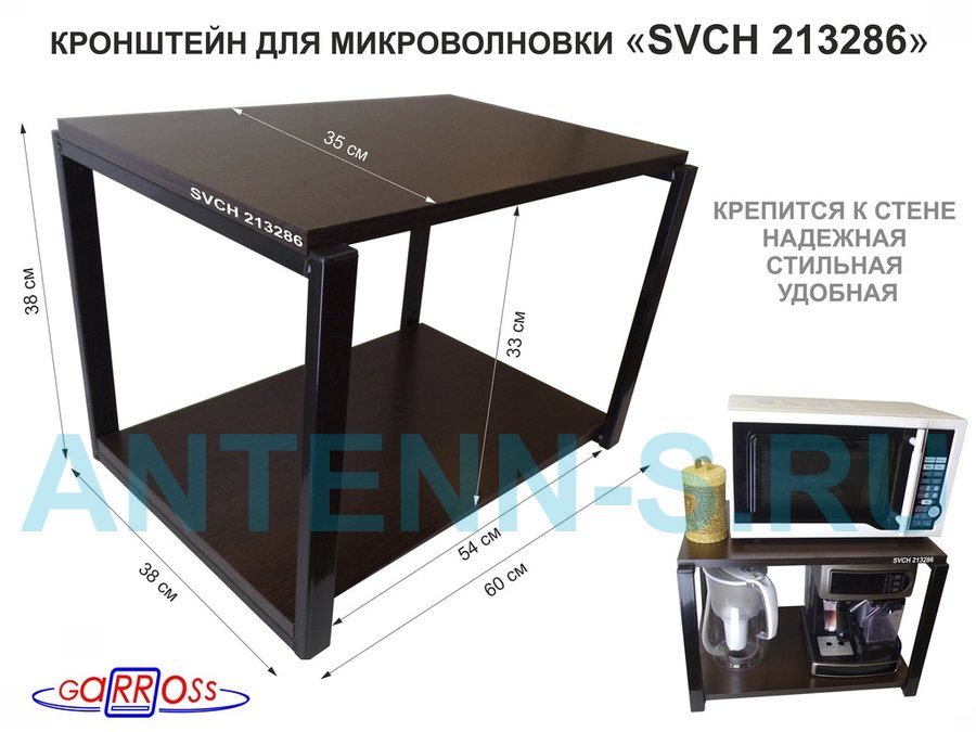 В корзину Купить в 1 клик Кронштейн для микроволновки, 38см черный "SVCH 213286" две полки 35х60см, венге