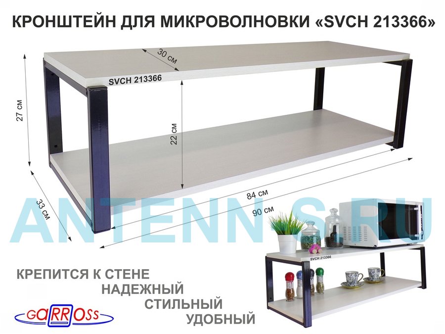 Полки для микроволновок "SVCH" кронштейны для СВЧ печей, высота 27см, 90х30см, 2 уровня