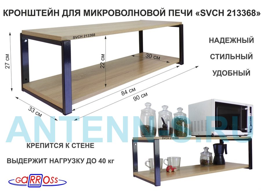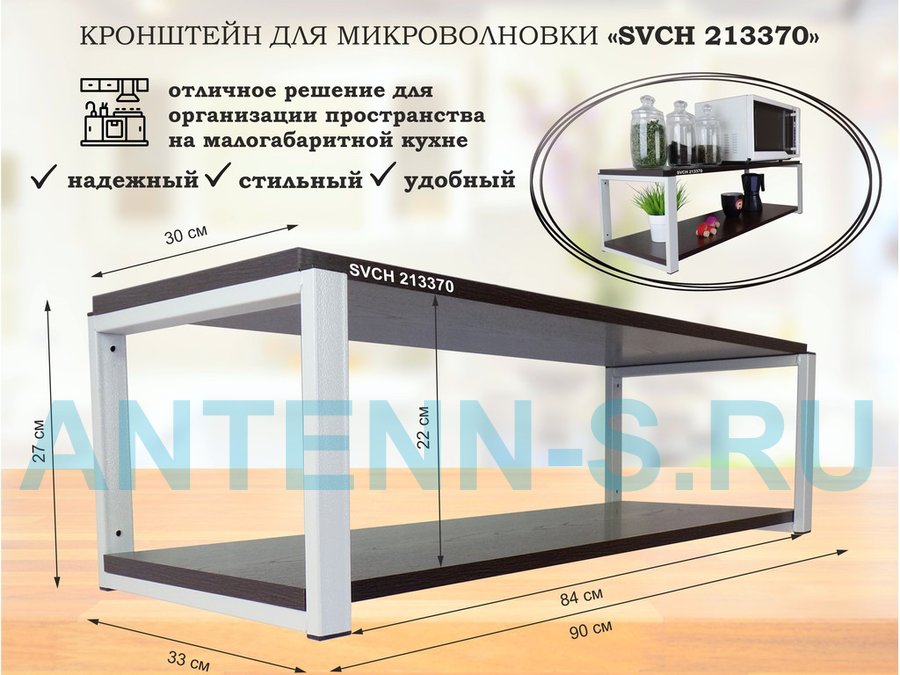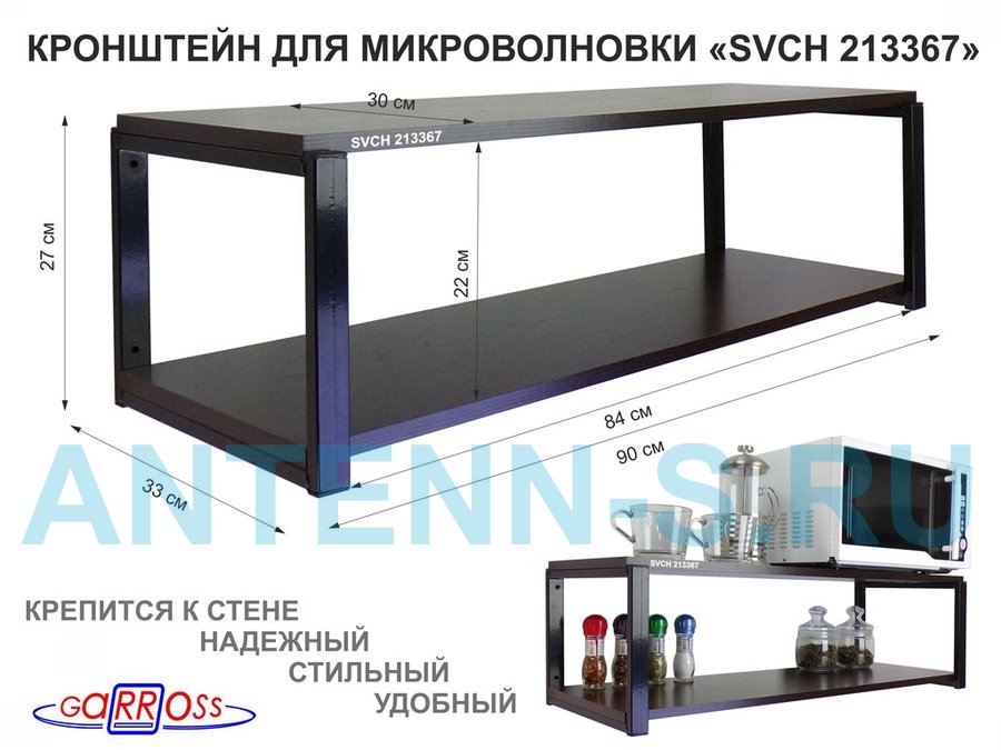 В корзину Купить в 1 клик Кронштейн для микроволновки, 27см серый "SVCH 213370" полки для кухни, 90х30, венге