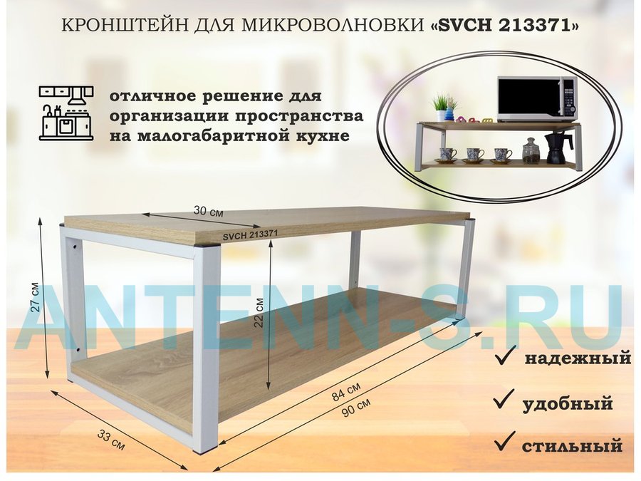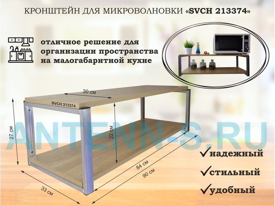 В корзину Купить в 1 клик Кронштейн для микроволновки, 27см серый "SVCH 213371" полки для кухни, 90х30, дуб