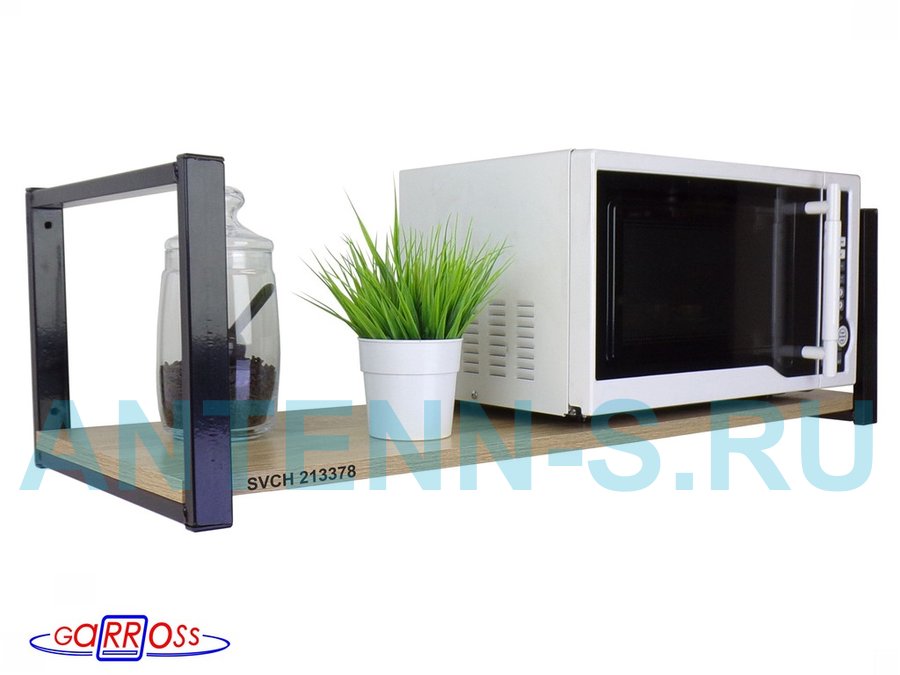 Кронштейн для микроволновки, 25см черный, 1 полка 90х30см "SVCH 213378" для кухни, дуб