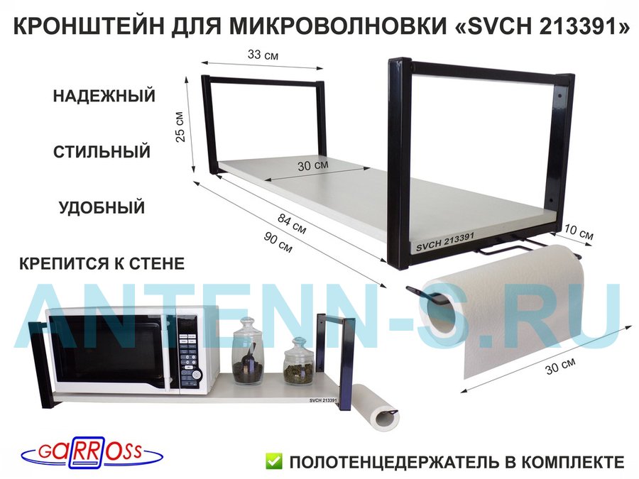 Полки для микроволновок "SVCH" кронштейны для СВЧ печей, высота 25см, 90х30см, 1 уровень, держатель