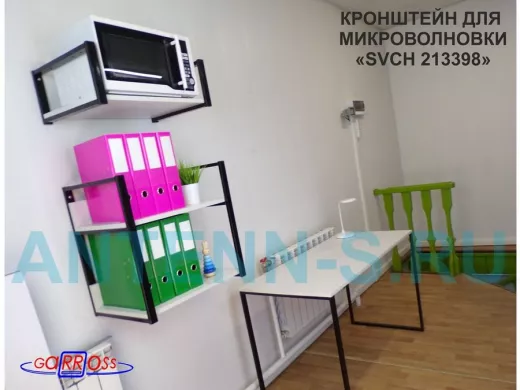 Кронштейн для микроволновки, 21см чёрный "SVCH 213398" одна полка 35х54см, сосна выбеленная