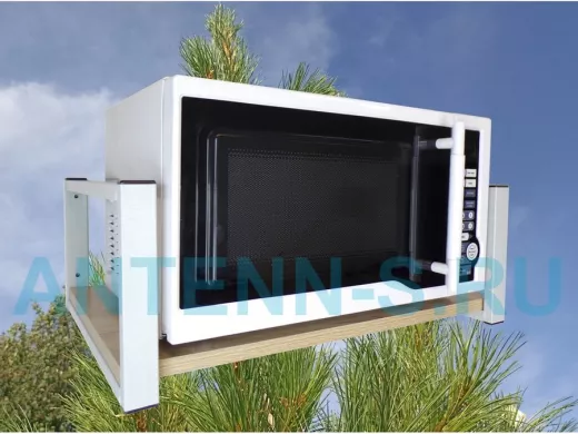 - Полка надежно крепится к стене при помощи анкеров или шурупов с дюбелями, на ней можно разместить микроволновую печь, кухонную технику, посуду, специи