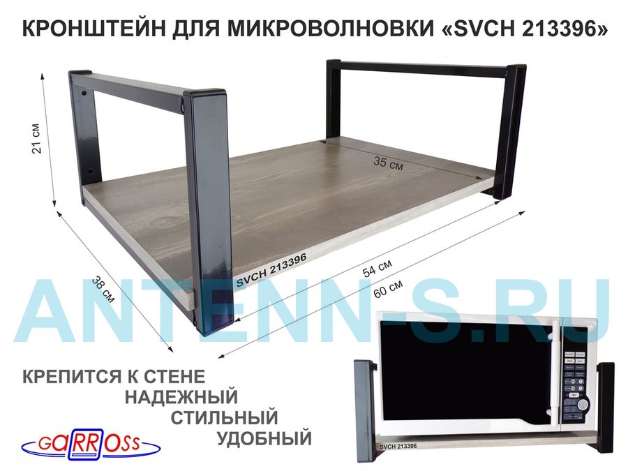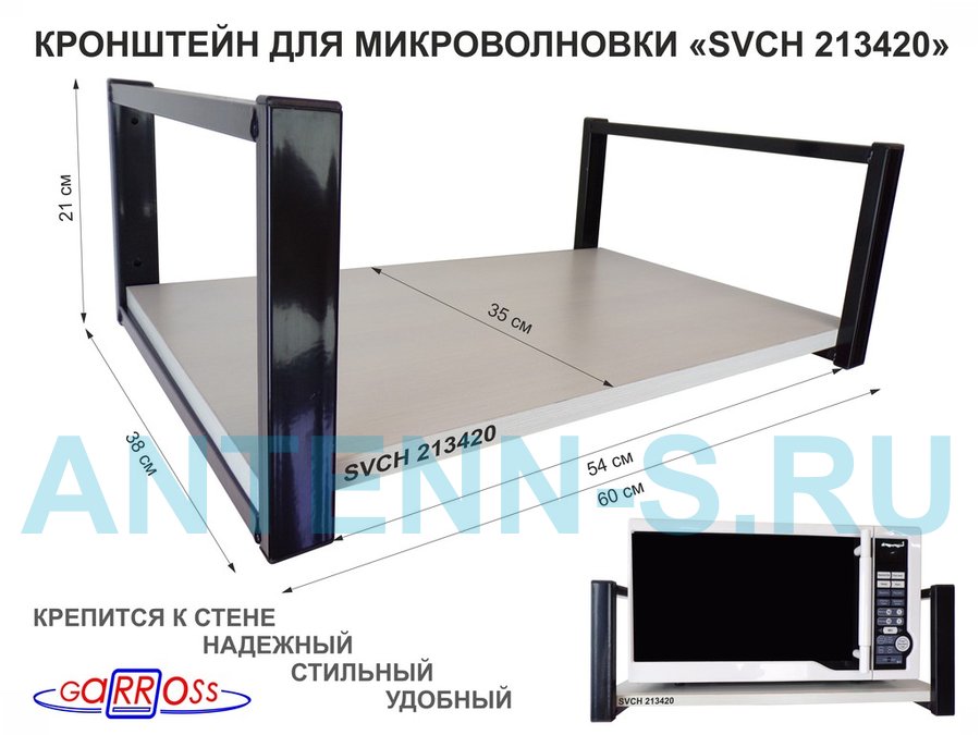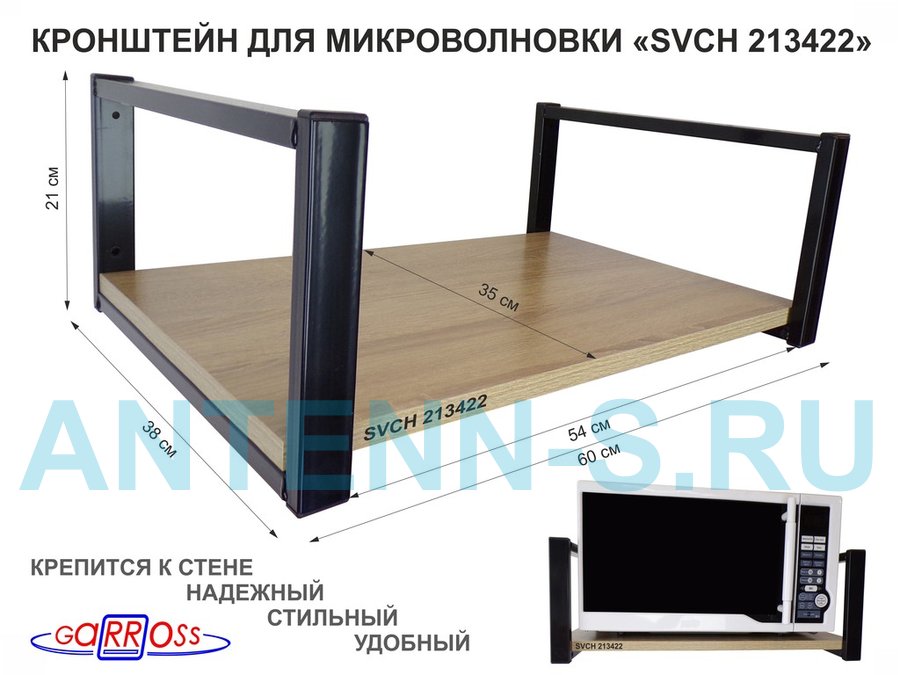 Полки для микроволновок "SVCH" кронштейны для СВЧ печей, высота 21см, 60х35см, 1 уровень