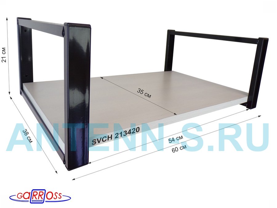 Кронштейн для микроволновки, 21см чёрный "SVCH 213420" одна полка 35х60см, сосна