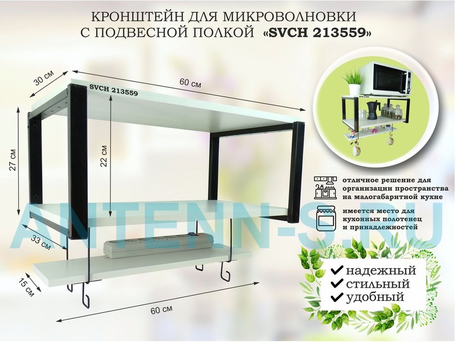 Полки для микроволновок "SVCH" кронштейны для СВЧ печей, высота 27см, 60х30см, подвеска 60х15