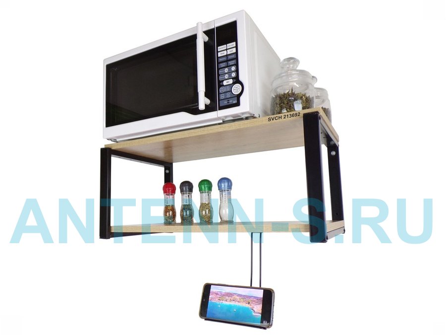 Полка для микроволновой печи с держателем телефона, 27см черный "SVCH 213692", 60х30, дуб сонома