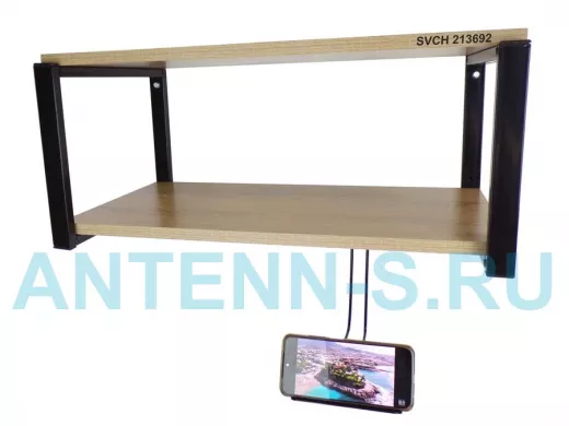 - Каркас изделия и держатель для телефона выполнен из высокопрочного металла. Полка изготовлена из ламинированного ДСП.