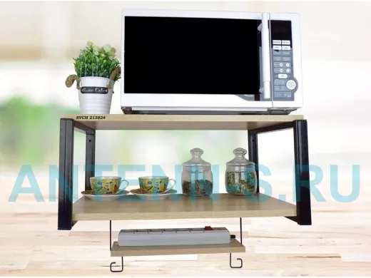 - На верхней полке можно разместить микроволновую печь или другую кухонную технику, на средней отлично "встанет" посуда, баночки под сыпучее и многое другое, а нижняя полка отлично подойдет для специй, таймера или маленьких сувениров