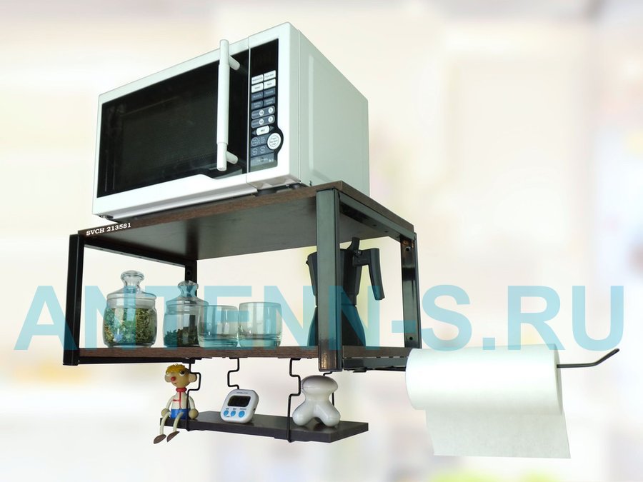 Полка для микроволновки 60x30см с подвеской 40x15см, 27см, черный "SVCH 213581" ,венге, с держателем