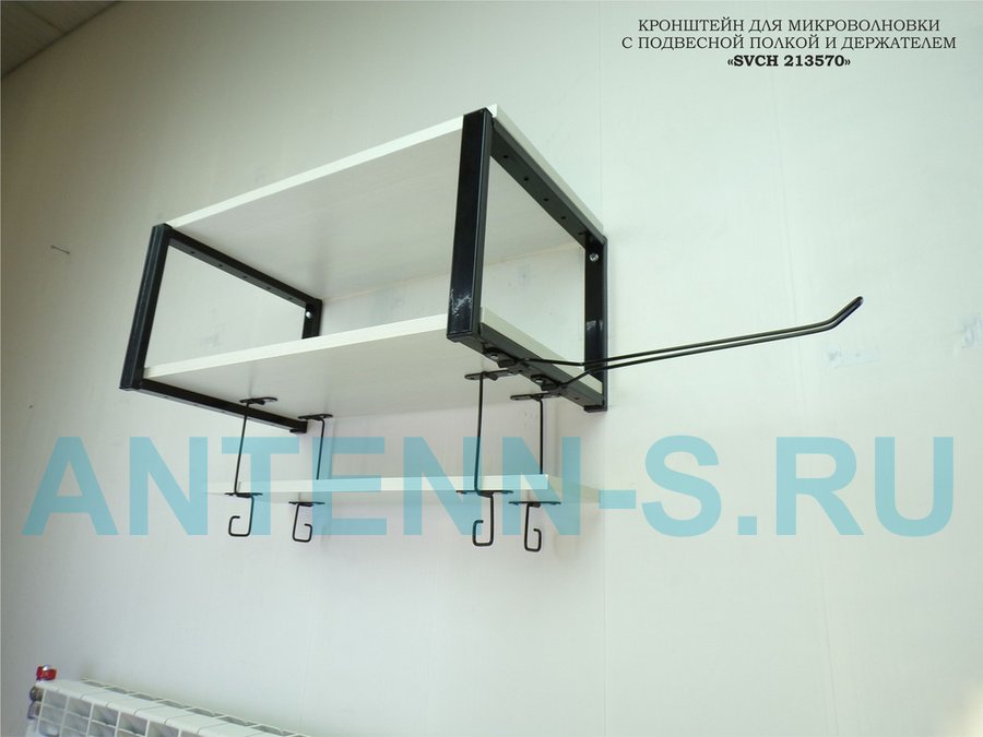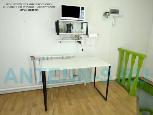 Полка для микроволновки с подвесной полкой, 27см, черный "SVCH 213570" 60х30см, сосна, держатель
